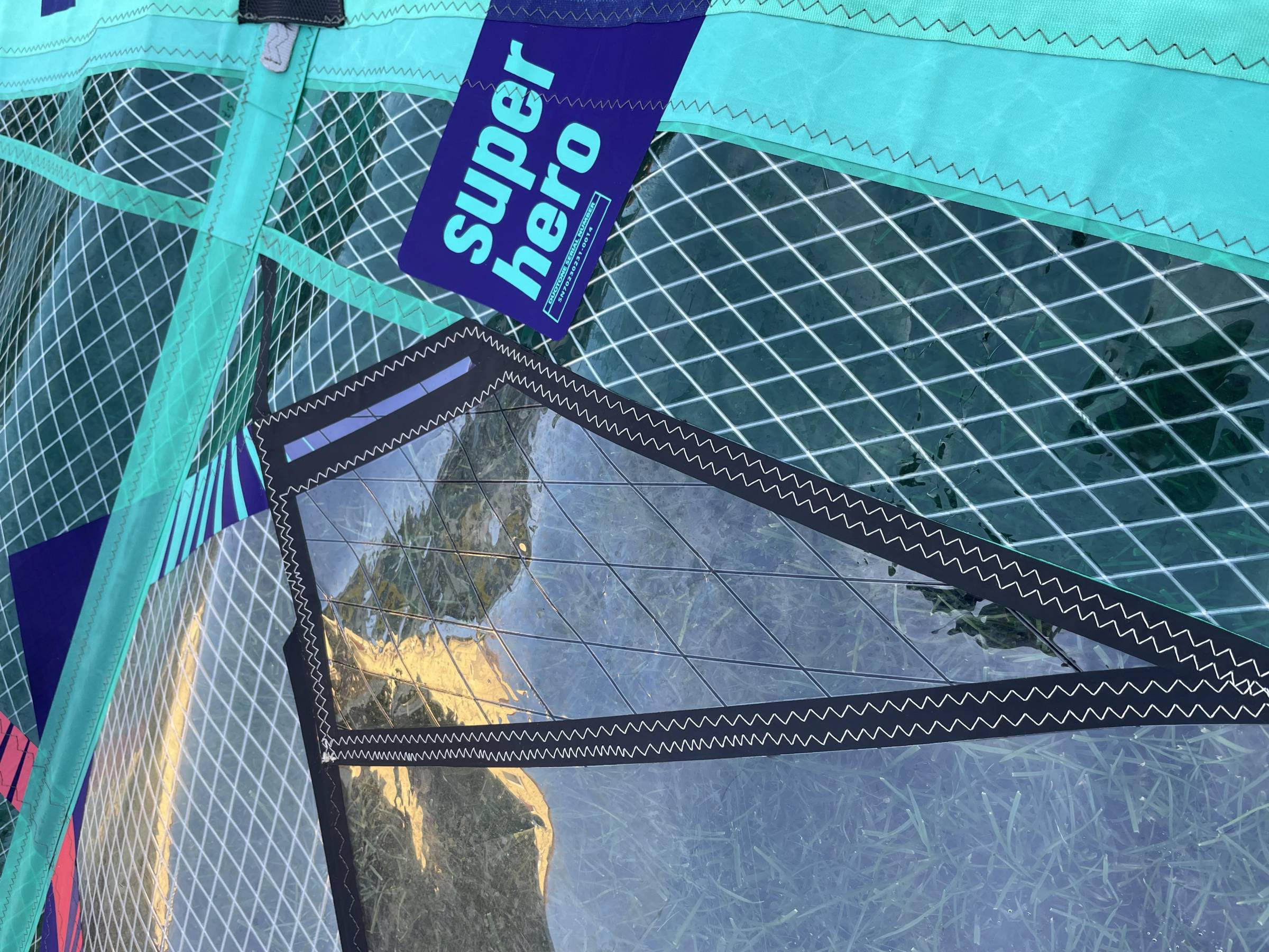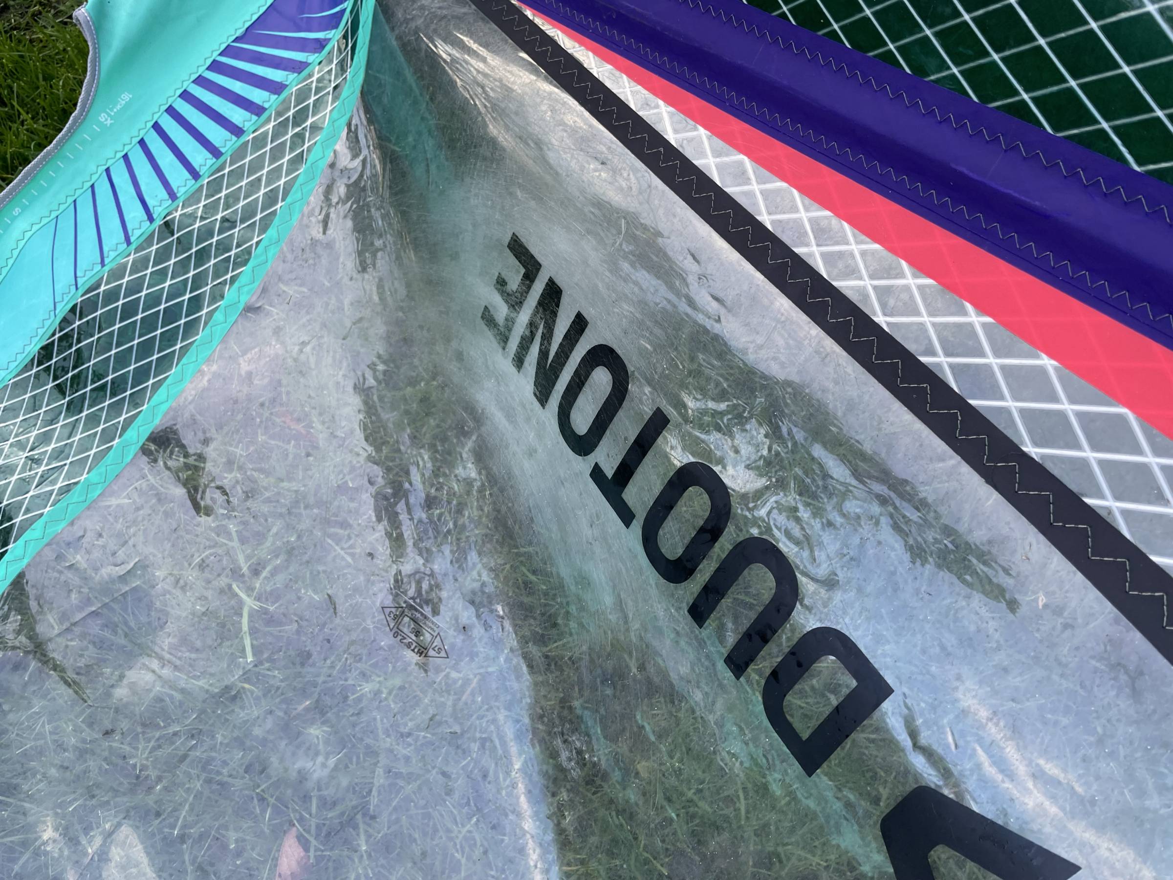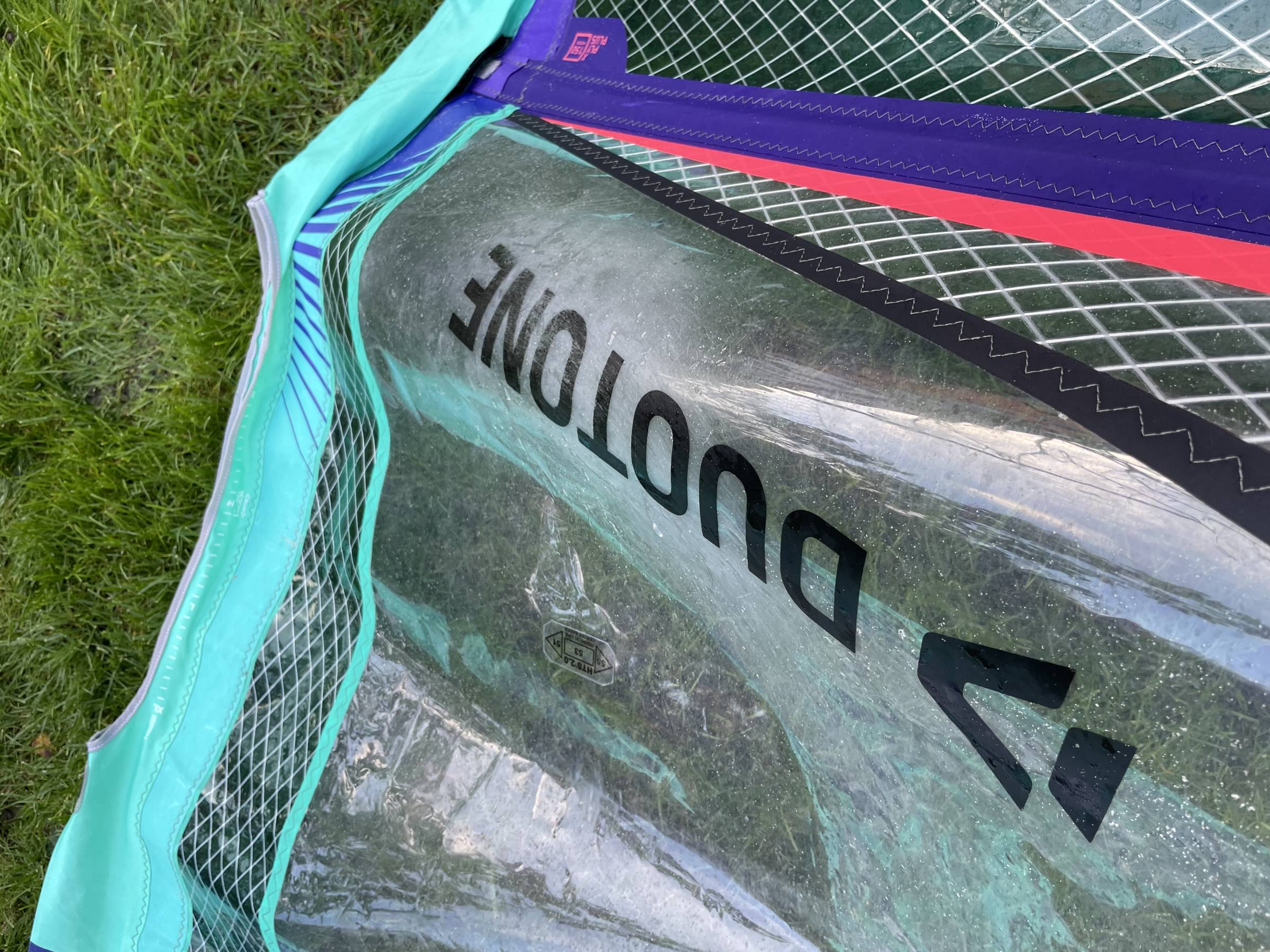 Alle Segel haben auf dem Schriftzug etwas Reibung durch Trapeztampen erfahren.