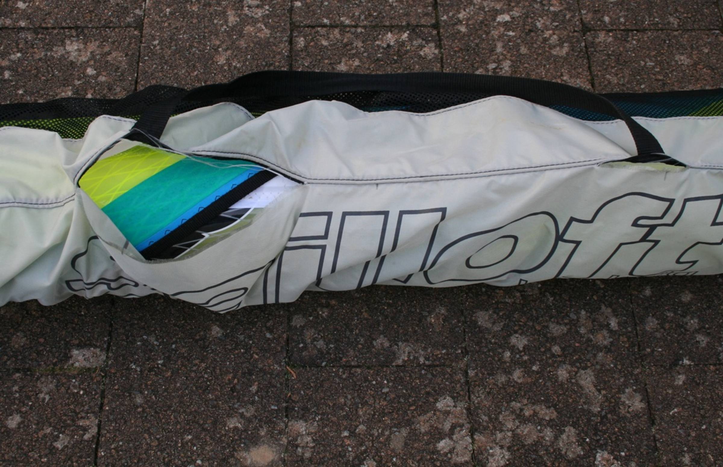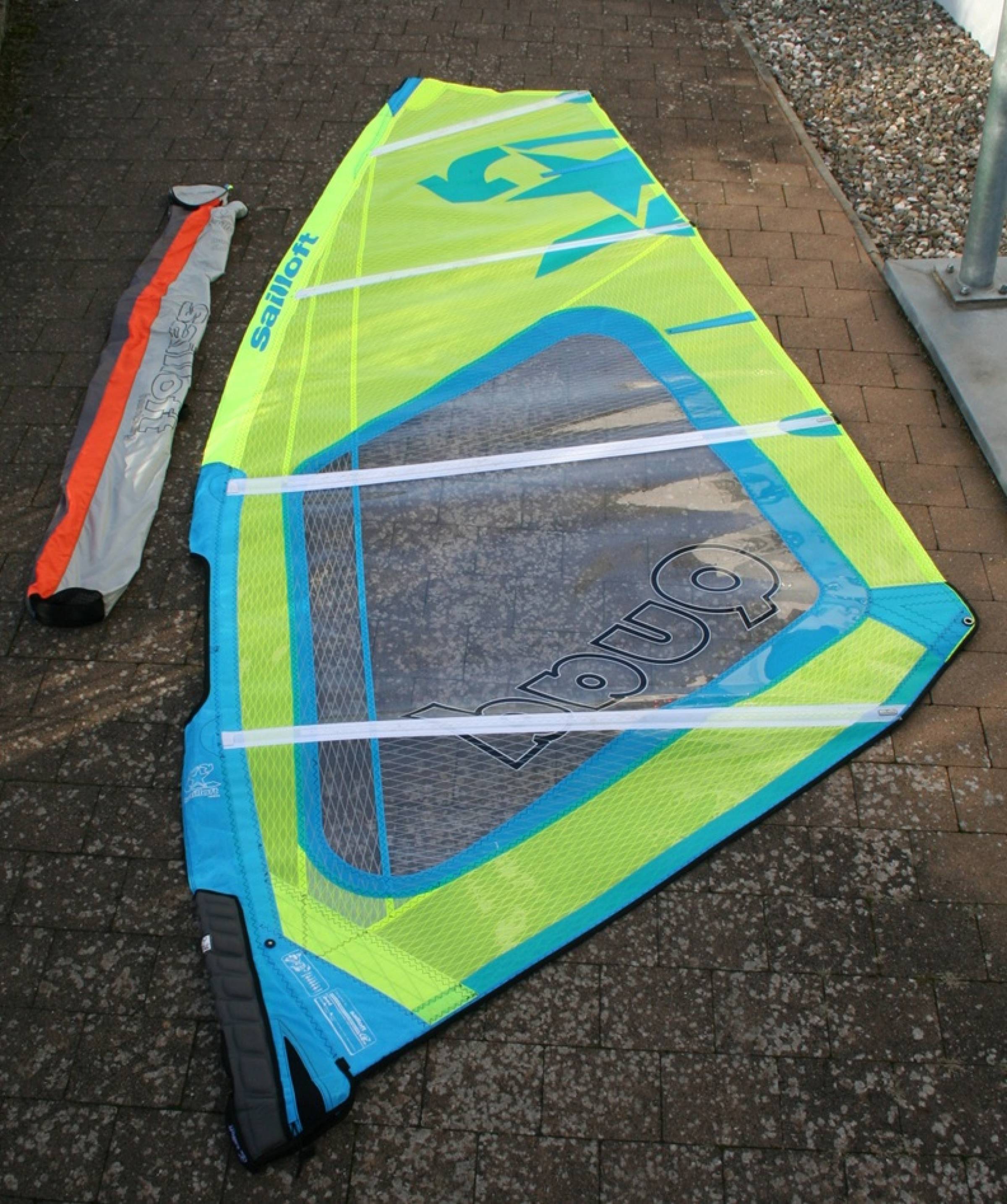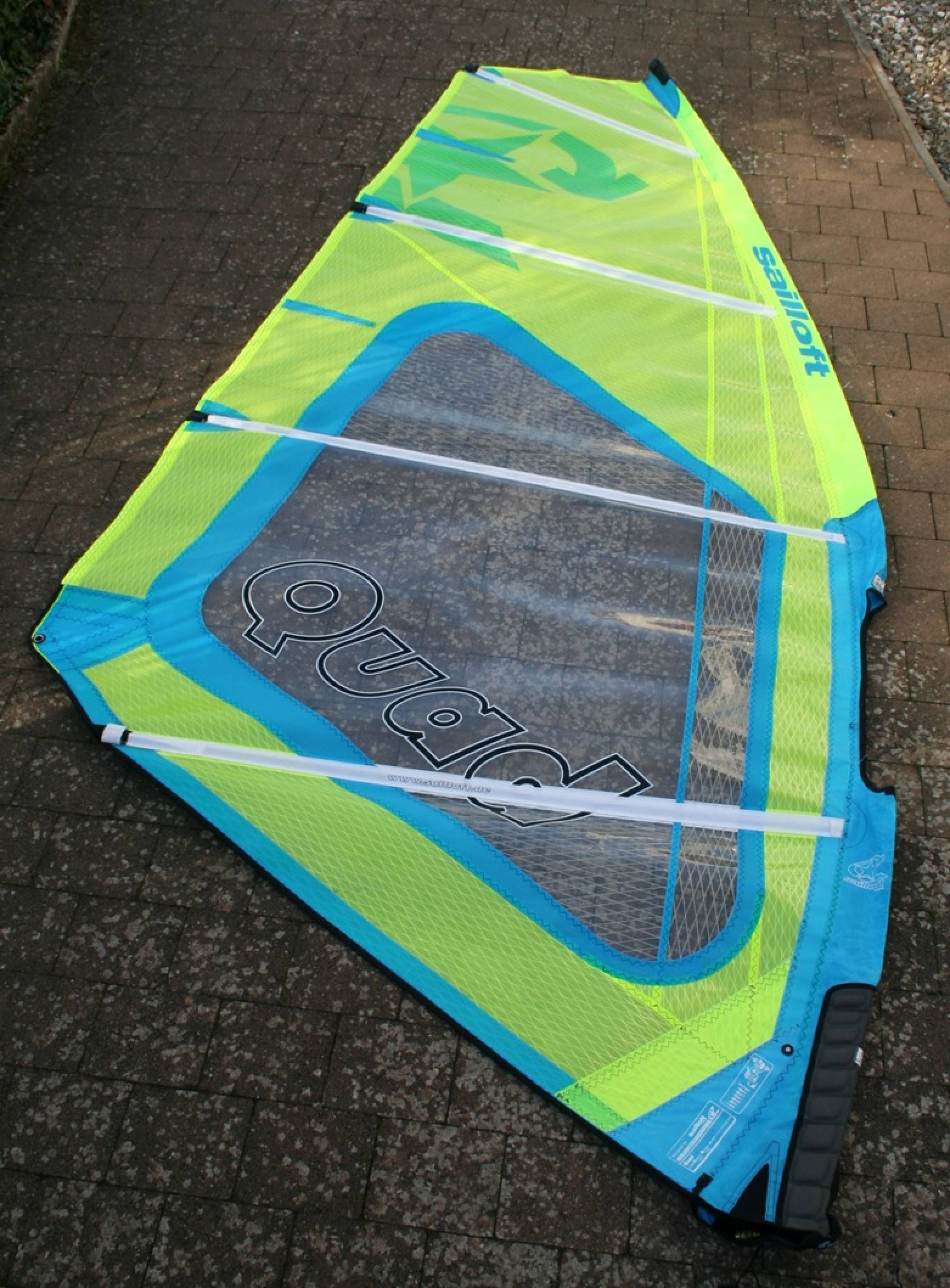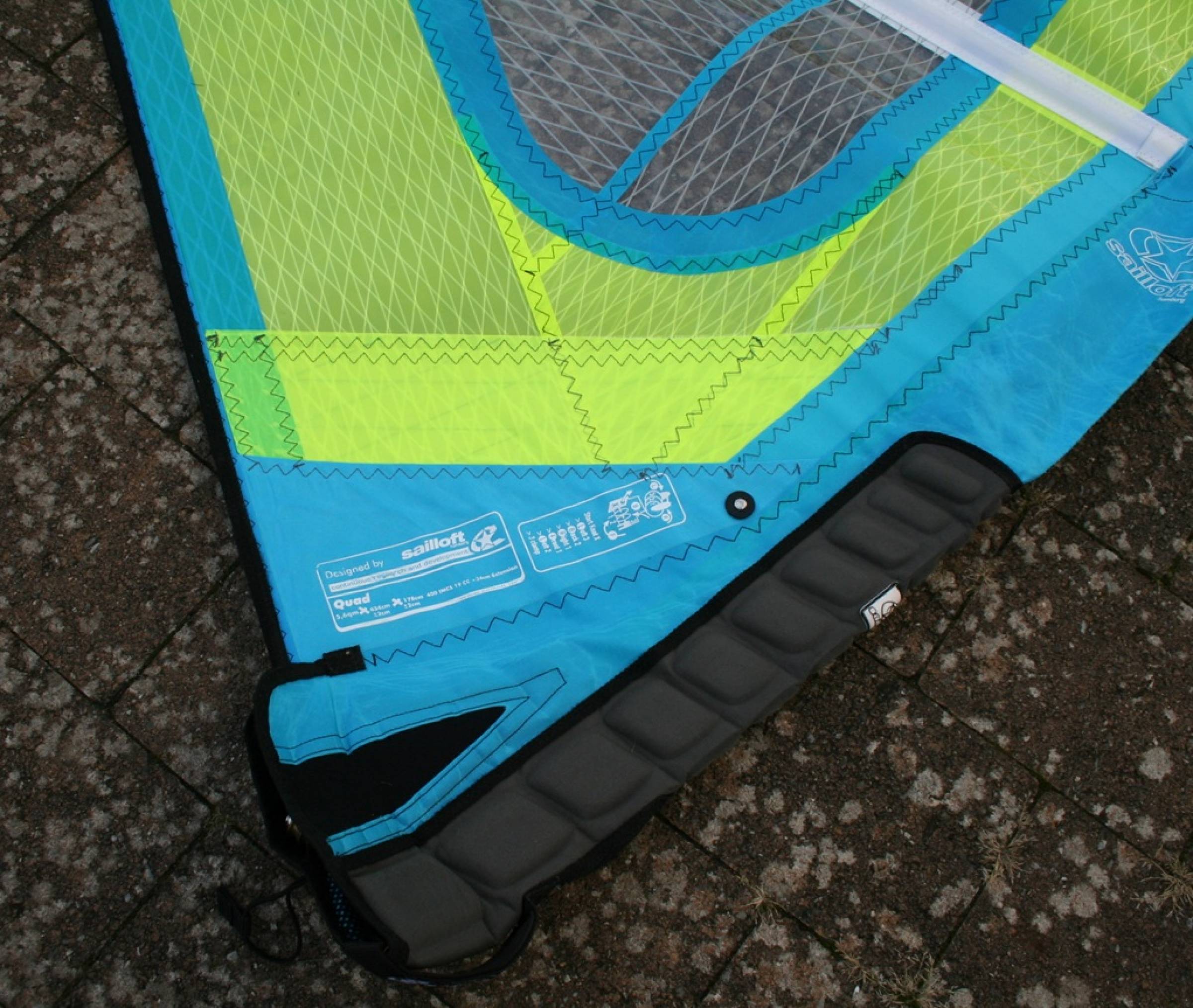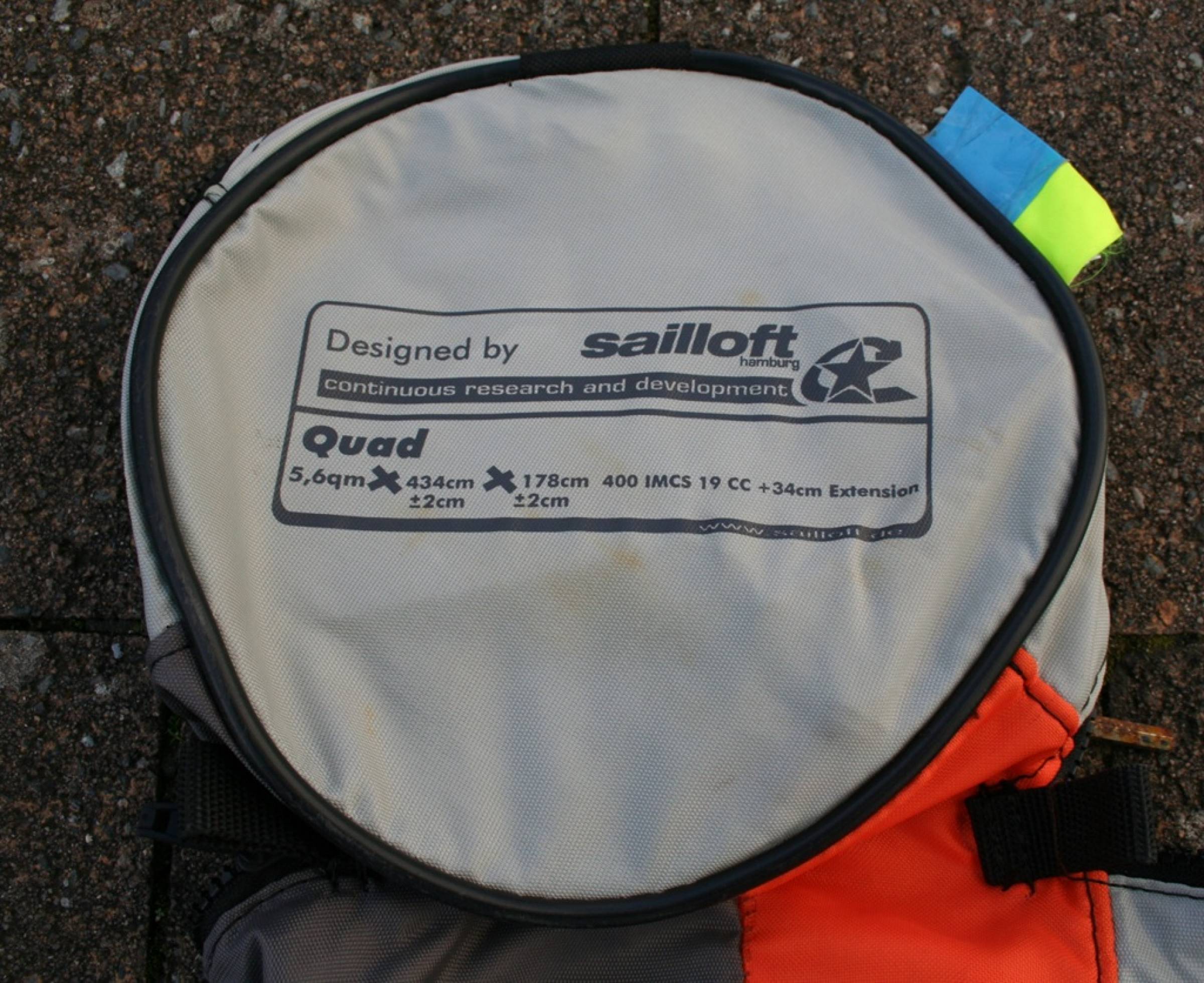 Verkaufen ein Sailloft Quad in 5,6 qm. Segel ist ohne Beschädigungen im Monofilm, X-Ply oder an der Masttasche. Im Unterliek ging eine Naht auf. Dies wurde provisorisch in einer Segelmacherei in NL verstärkt (siehe Bilder). Auch an der Segeltasche ist eine Naht aufgegangen.
