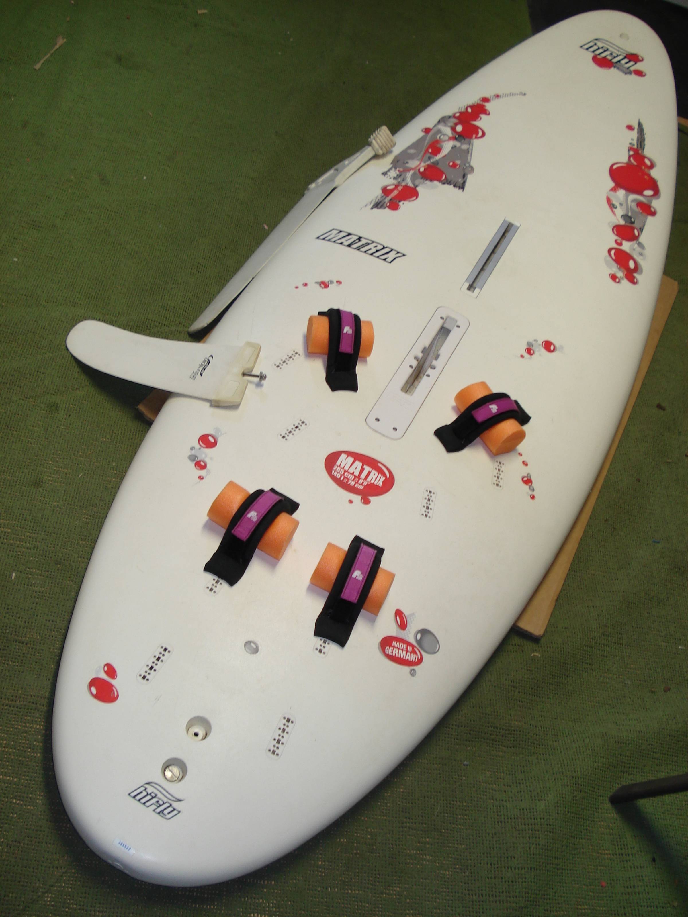 für Anfänger, Aufsteiger oder als Familienboard, moderne Form/Abmessungen: 265 x 78, beste Fußschlaufen, beste Schwertlippen, unkaputtbar (gern auch mit Rigg komplett)