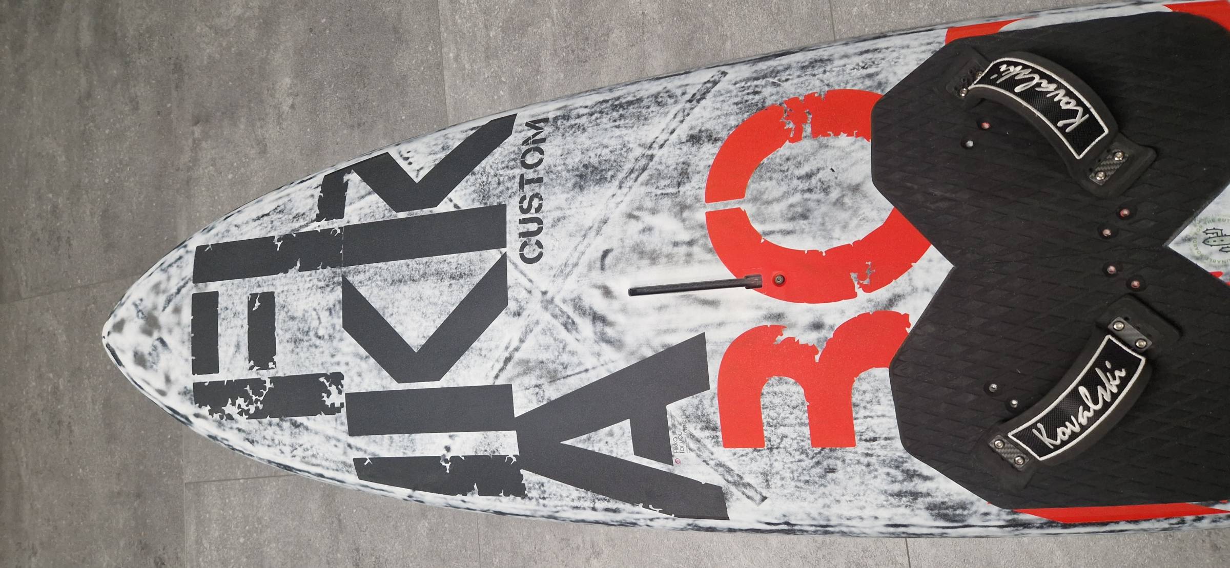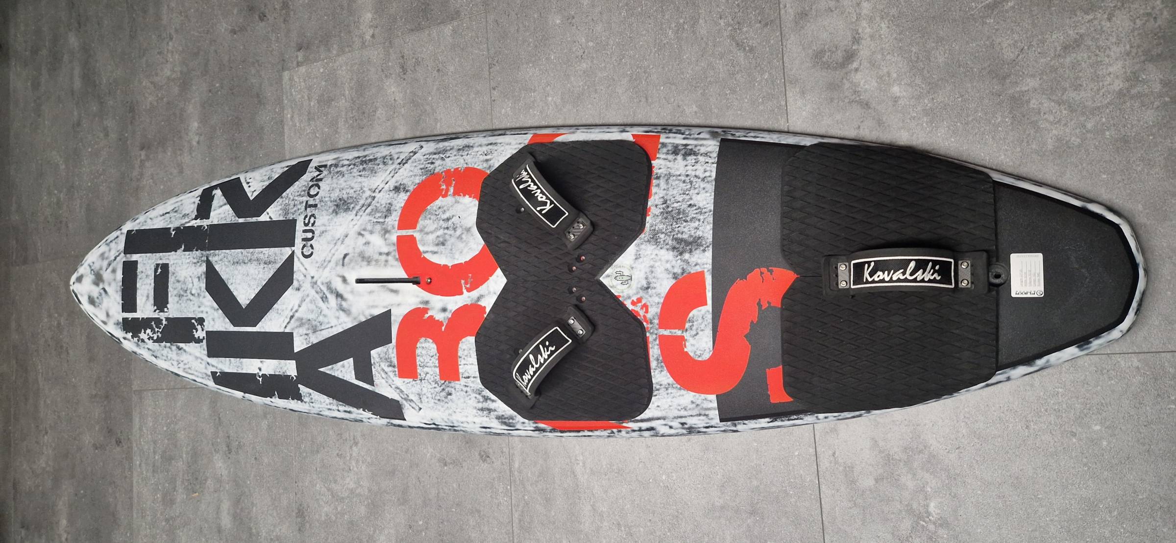 Kovalski-Fussschlaufen können dran bleiben, Boardbag und hochwertige MB Finnen bei Bedarf gegen Aufpreis.