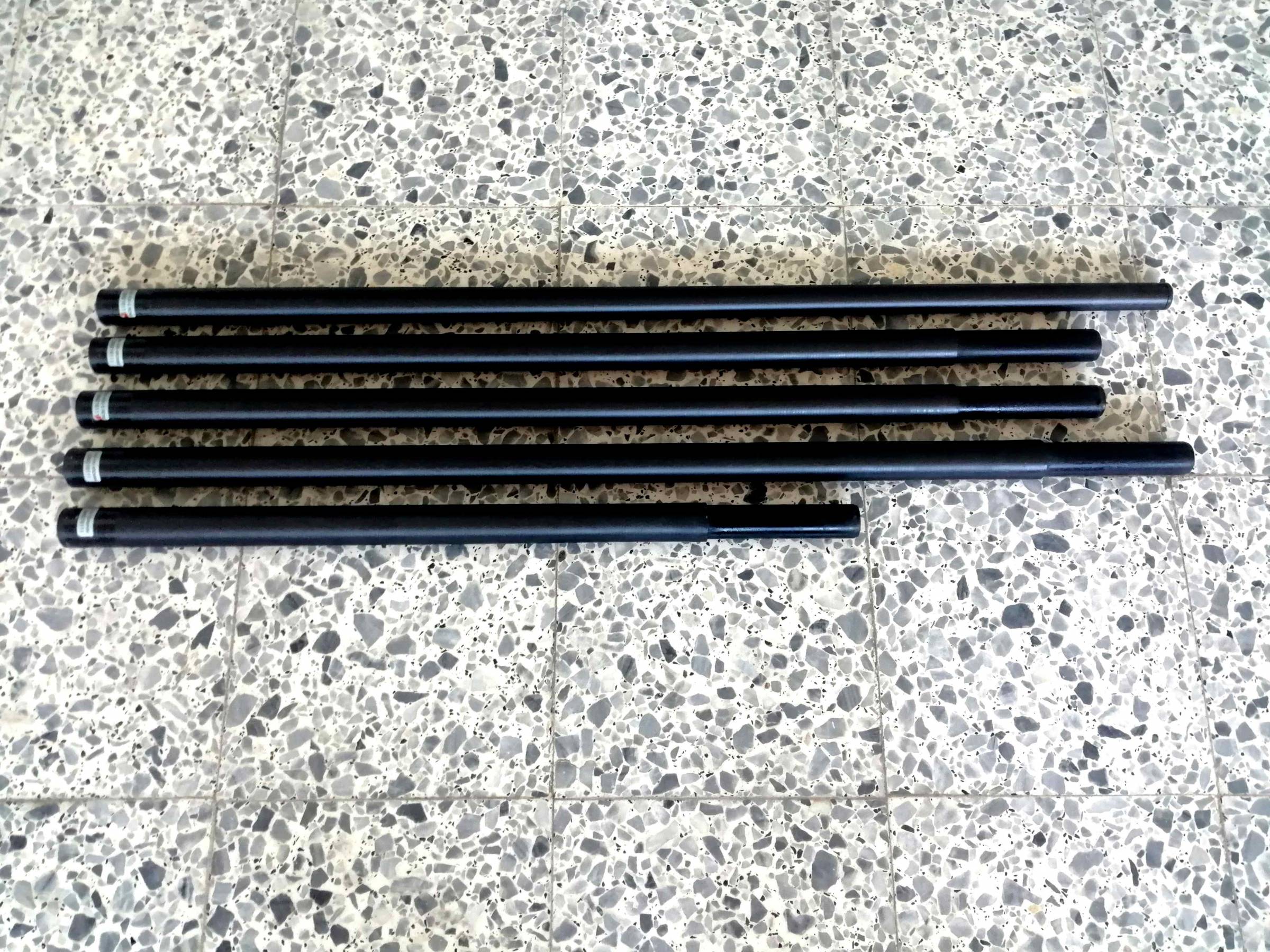 Neuer Mast, 1x Probe geriggt. Man kann aus den Steckverbindungen einen 370er und einen 430er Mast bauen. 80 % Carbon. Stecklänge: 108cmm, Gewicht: 2,3kg.