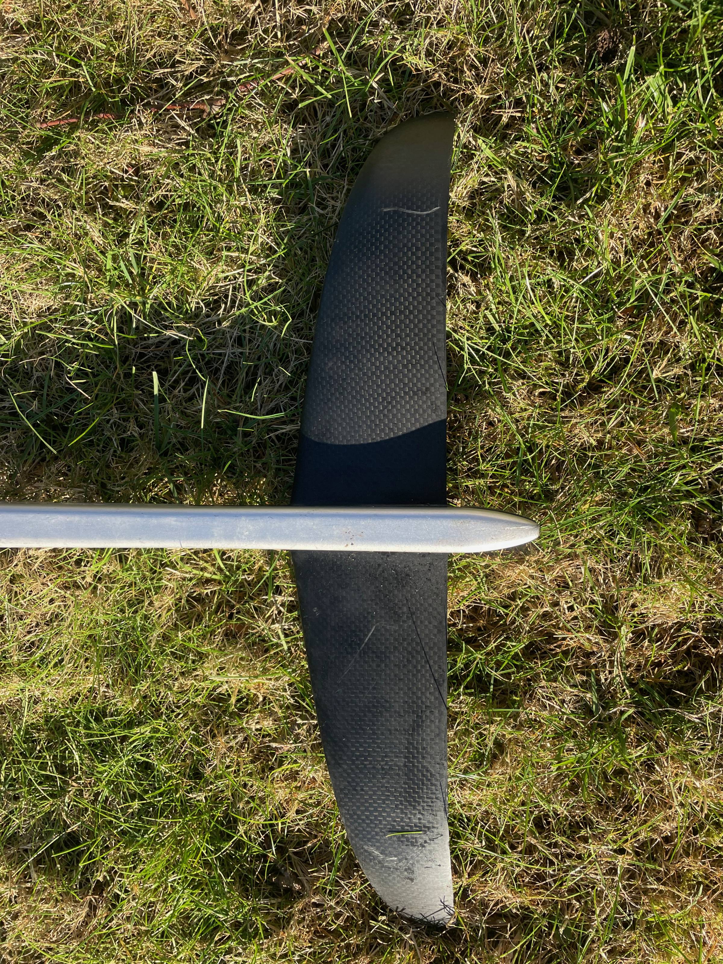 Zustand ist ziemlich gut – Kratzer sind vorhanden, da ich mit dem Foil viel gefahren bin. Einige Kratzer hat es, aber die haben keinen Einfluss auf die Fahreigenschaften.
