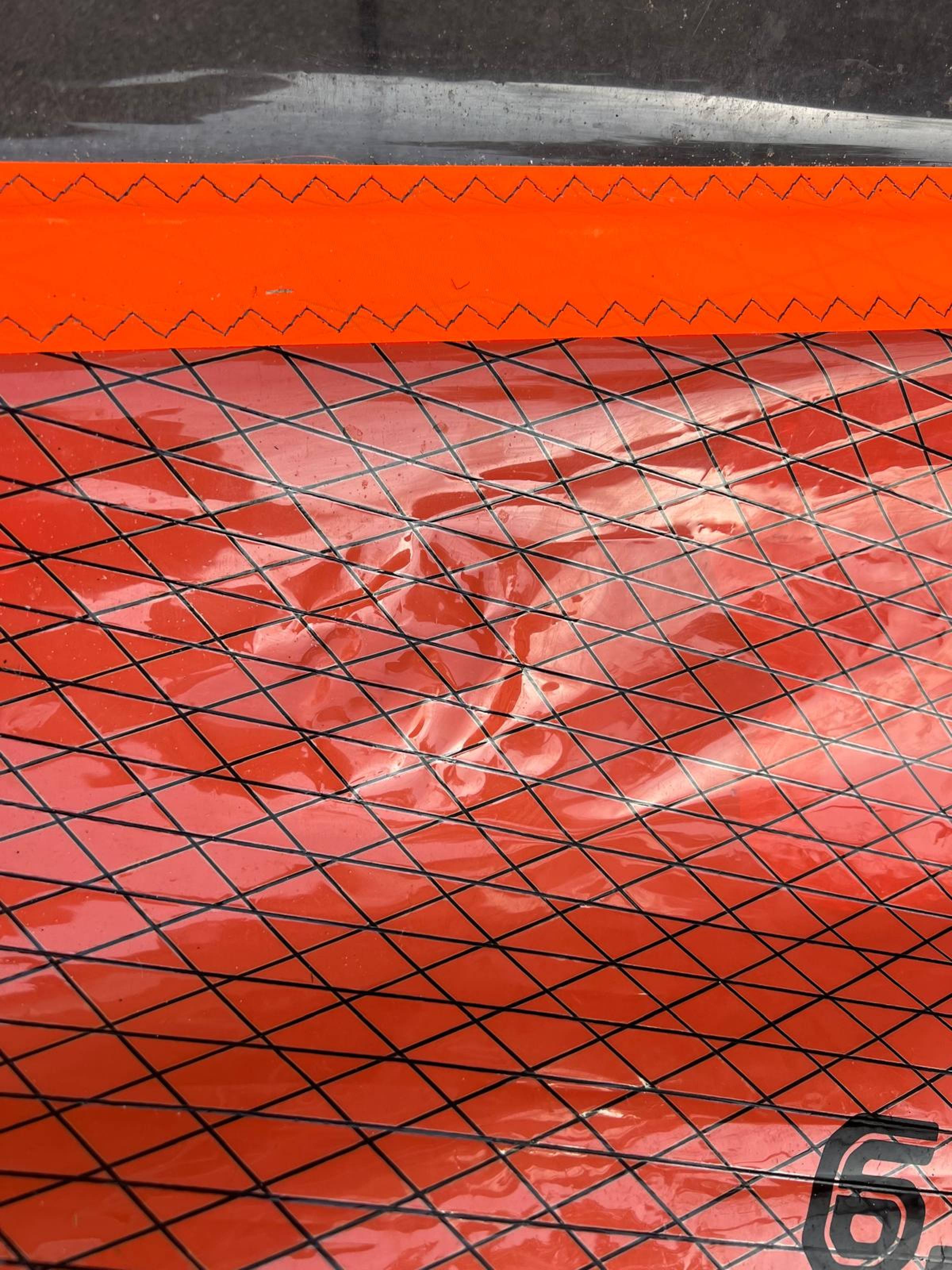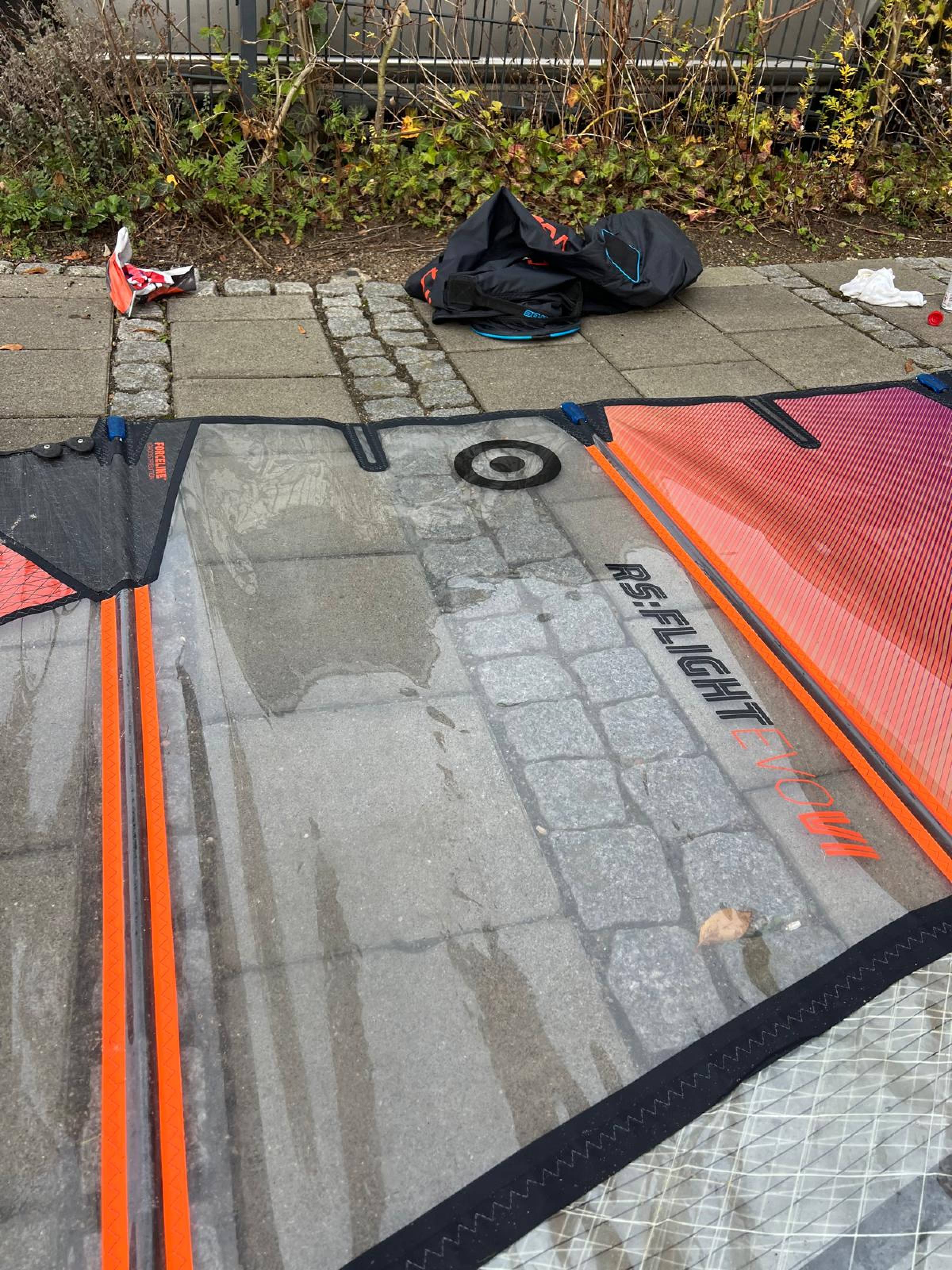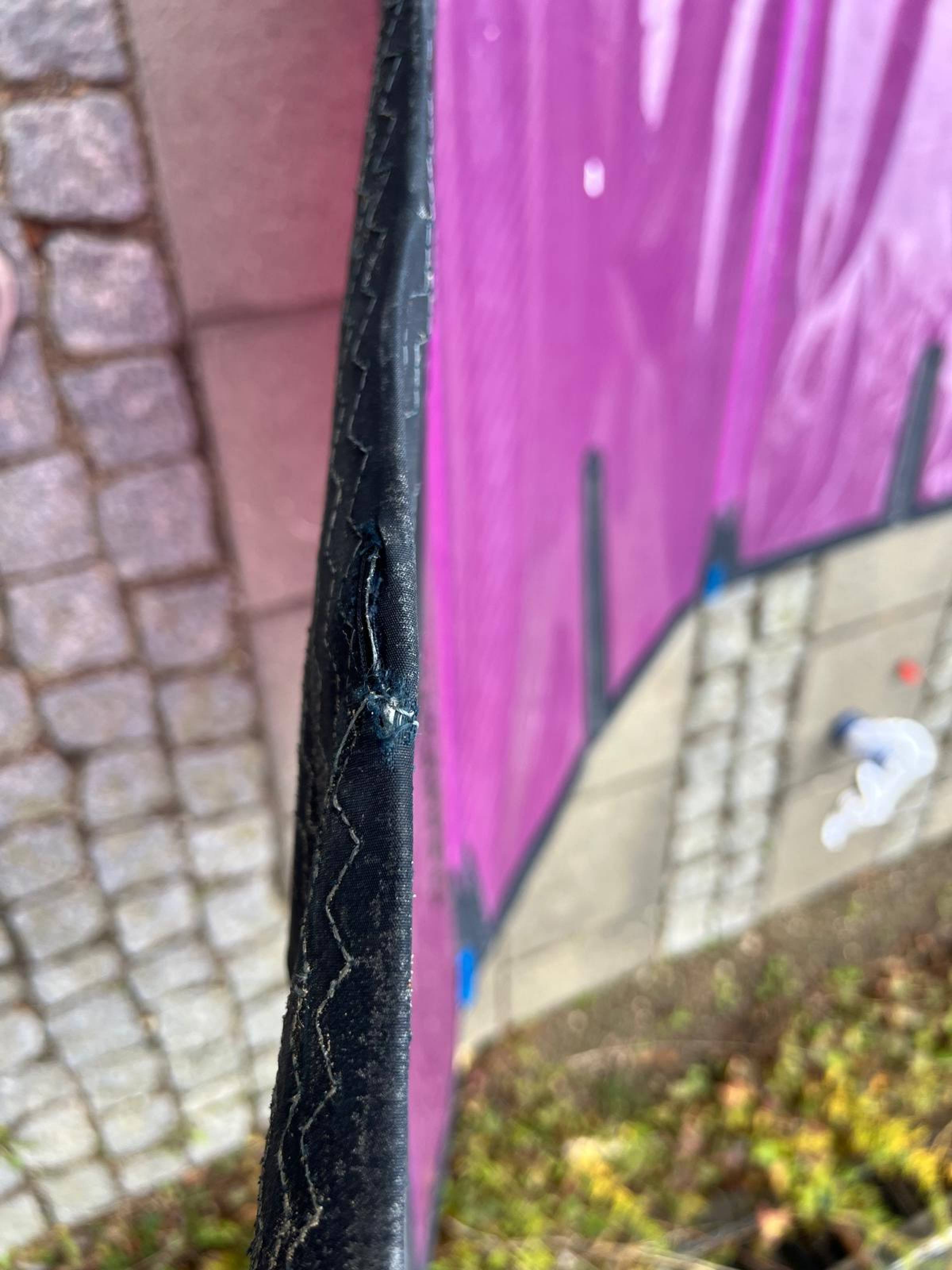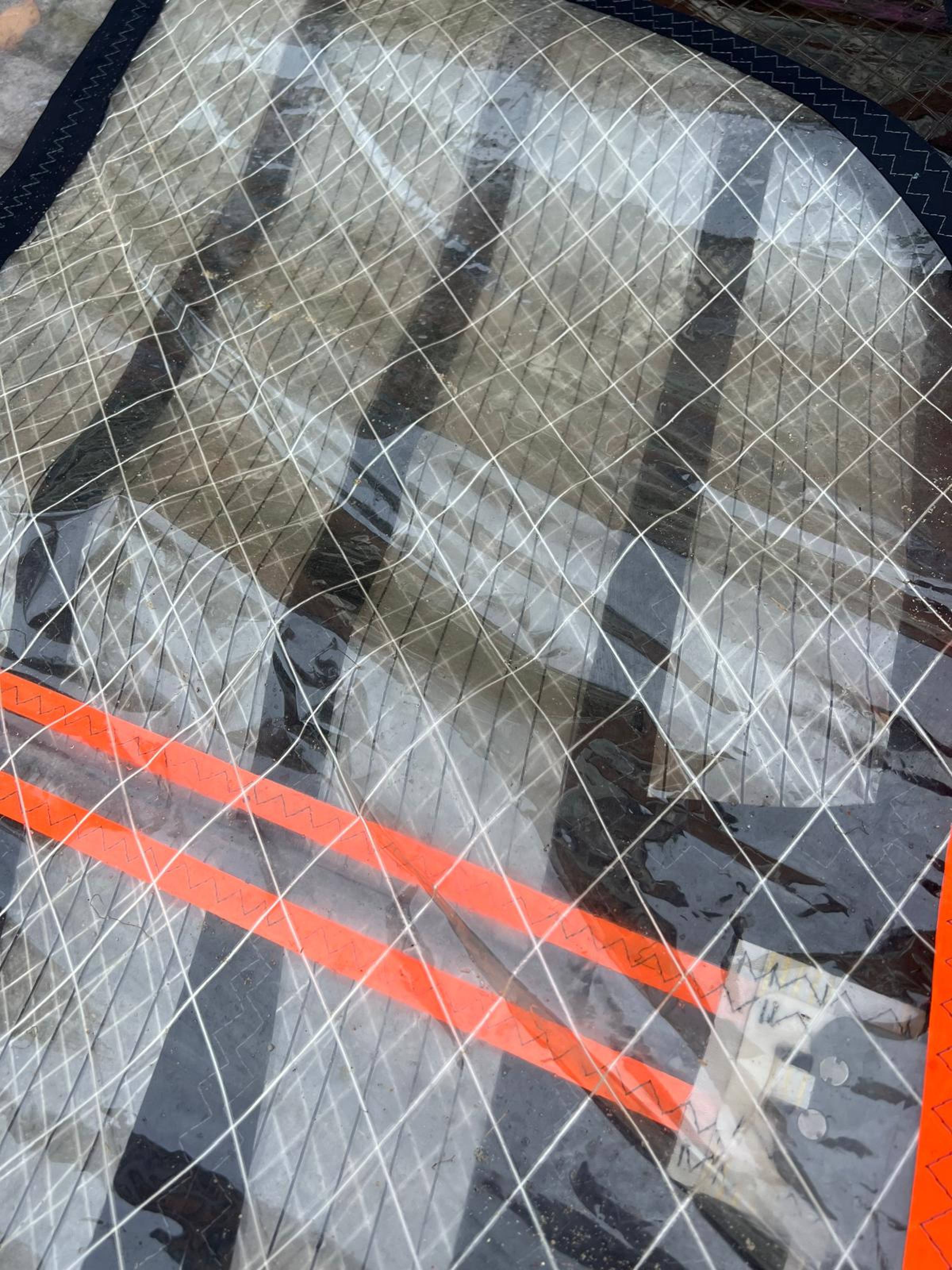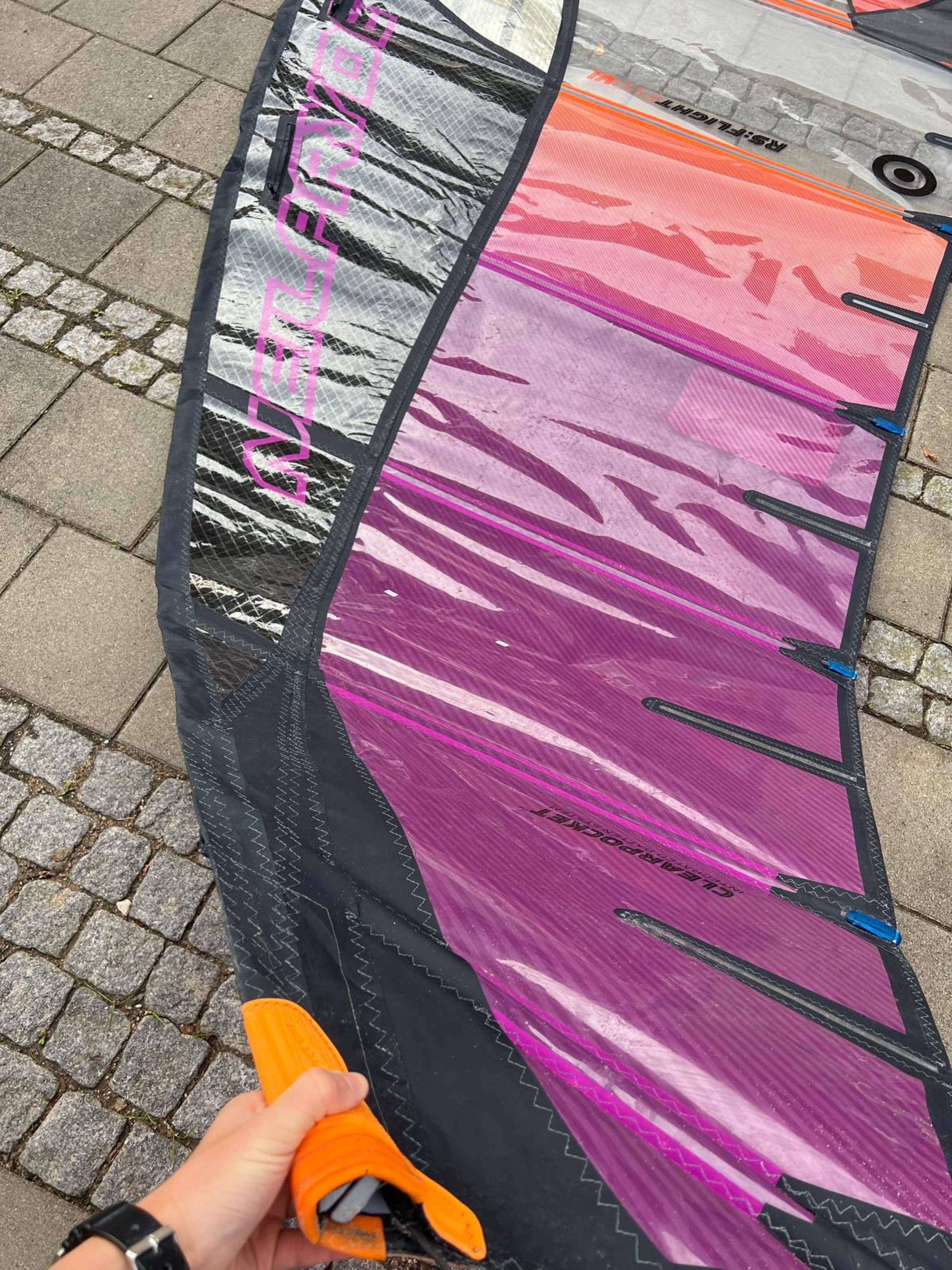 Das Segel ist aus 2025 und wurde recht wenig gefahren. Der Zustand dementsprechend nicht neuwertig, aber gut. Es gibt eine kleine Macke an der Mastasche (siehe Foto). Die macht nichts aus, man muss nur beim Mast reinschieben etwas vorsichtig sein.
