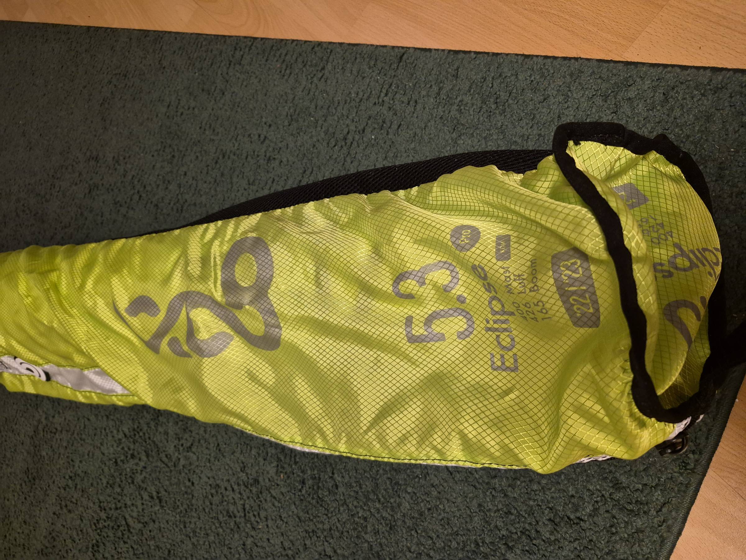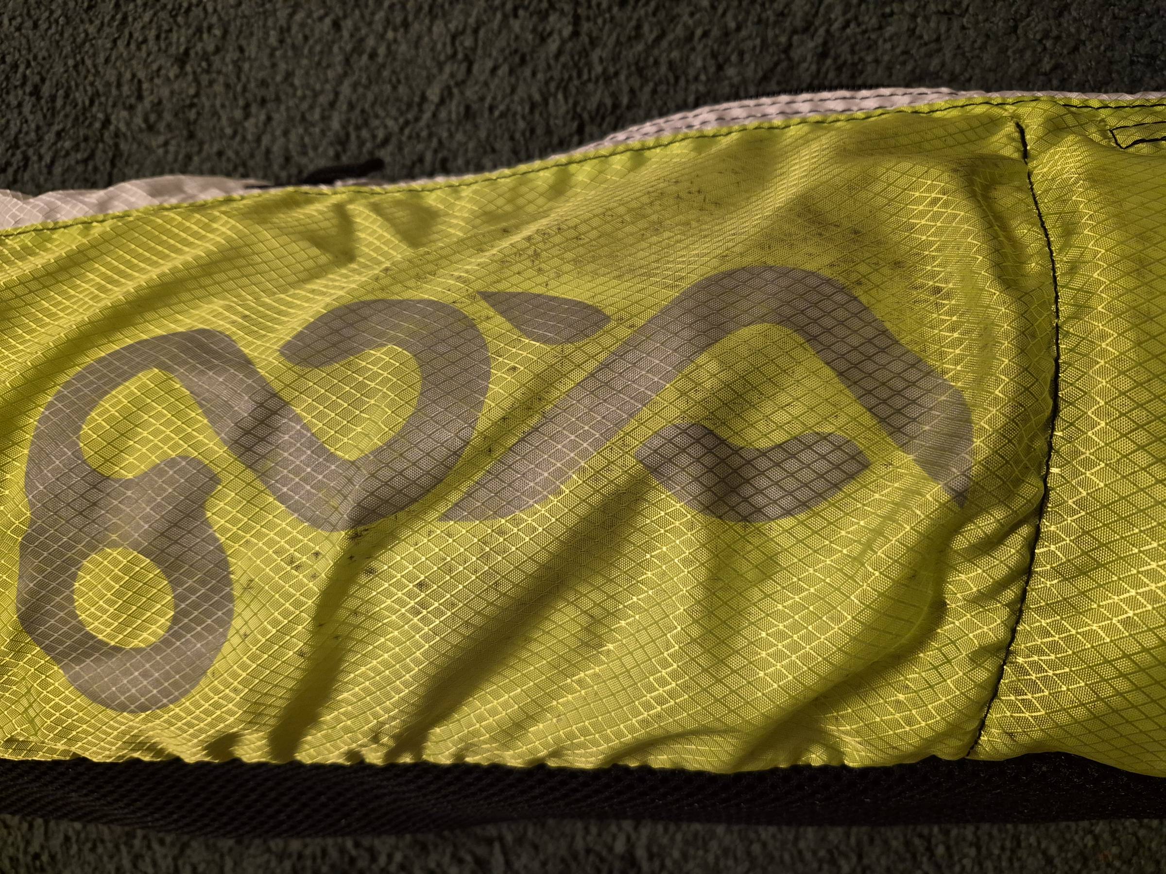 Die Tasche hat oben ganz leichte Stockflecken. Das kam so schon aus dem Shop, am Segel ist aber keine Spur davon.