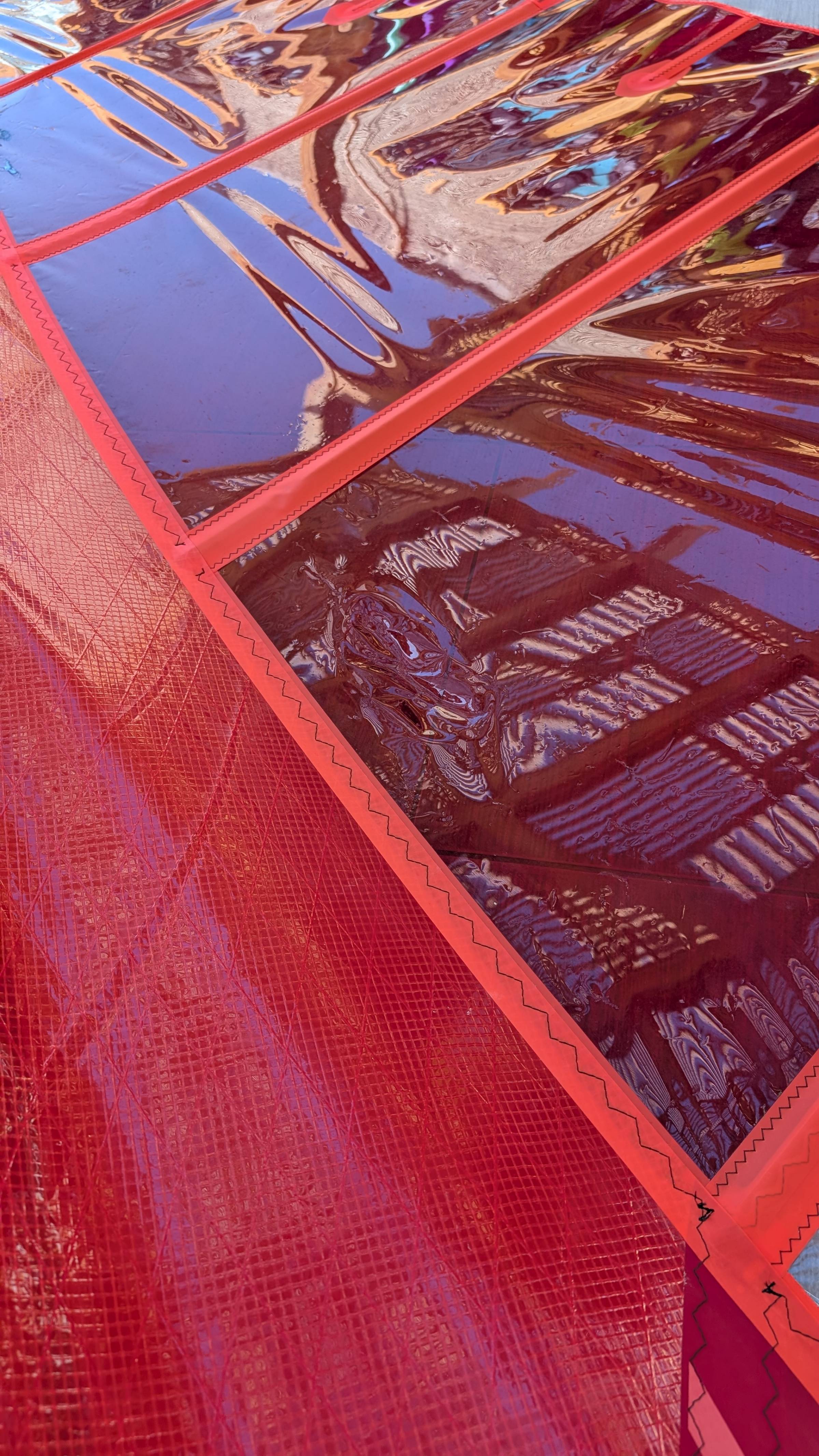 Eine kleine Druckstelle in der Folie, nur etwas gedehnt ohne Riss (siehe Foto 2 und Foto 8).