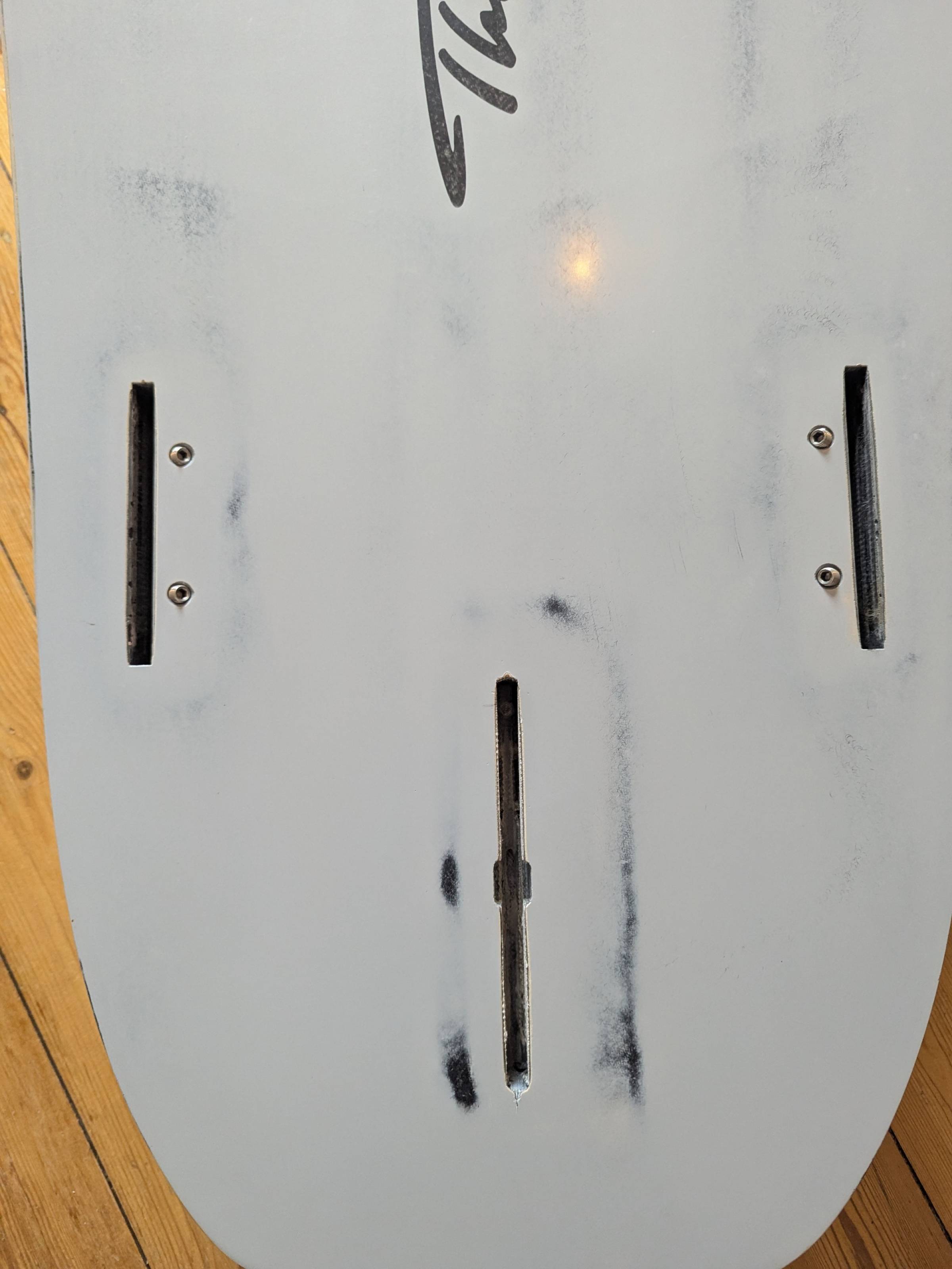 Verkauft wird es mit den gezeigten Fußschlaufen aber ohne Finnen, kann man aber gerne darüber sprechen.