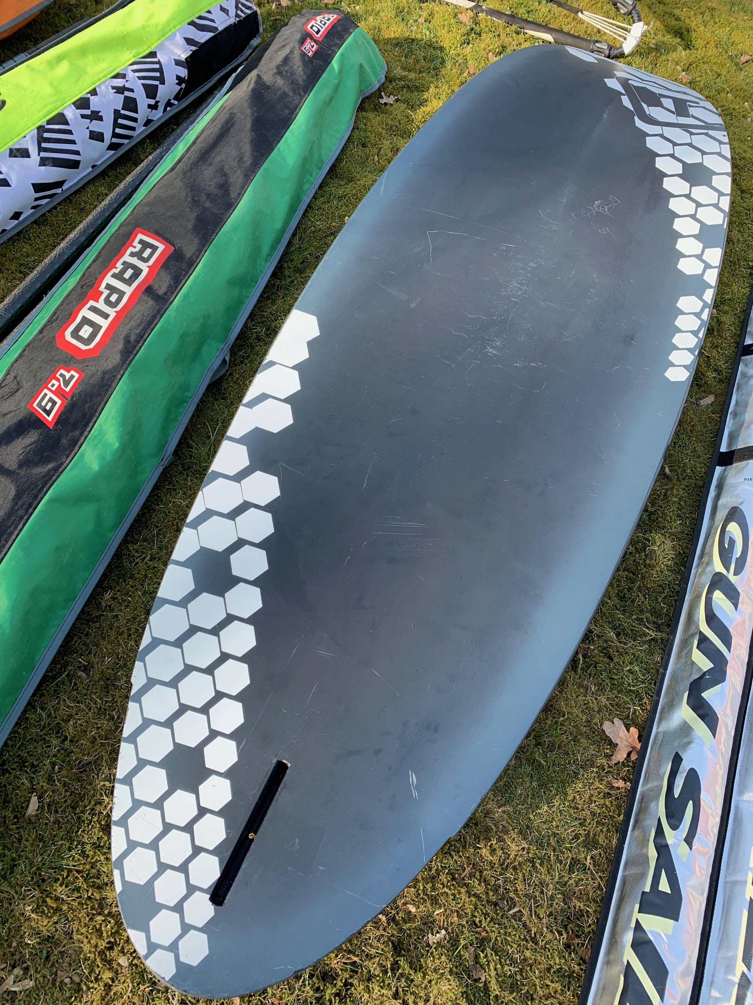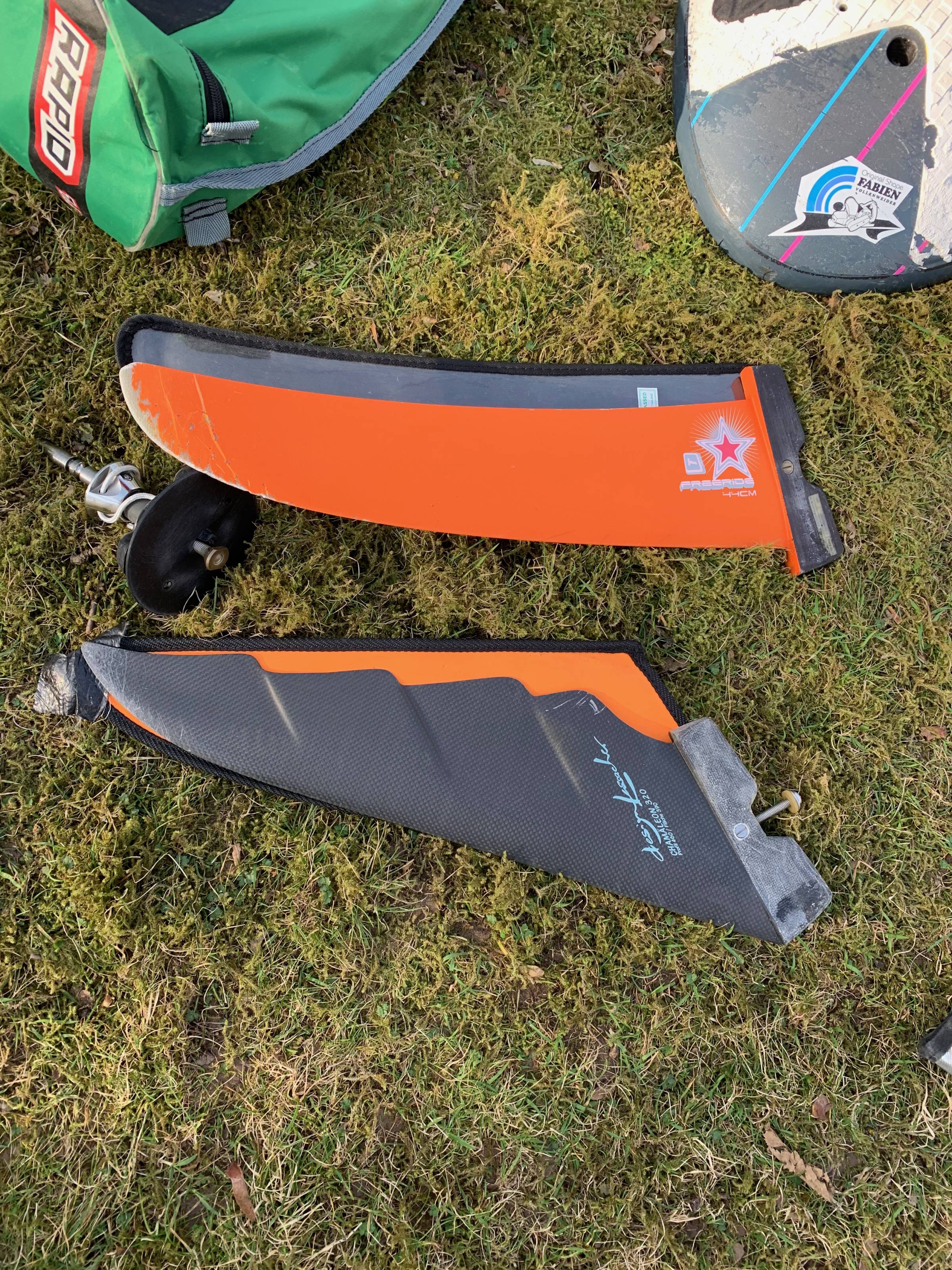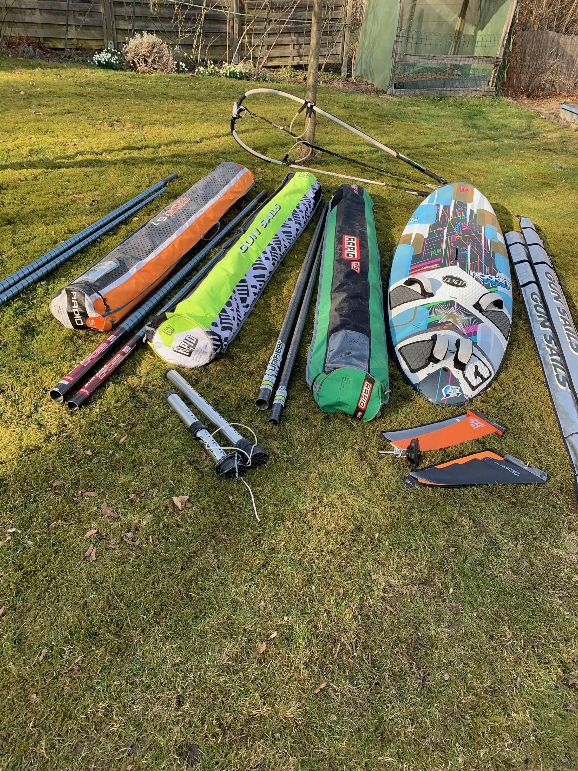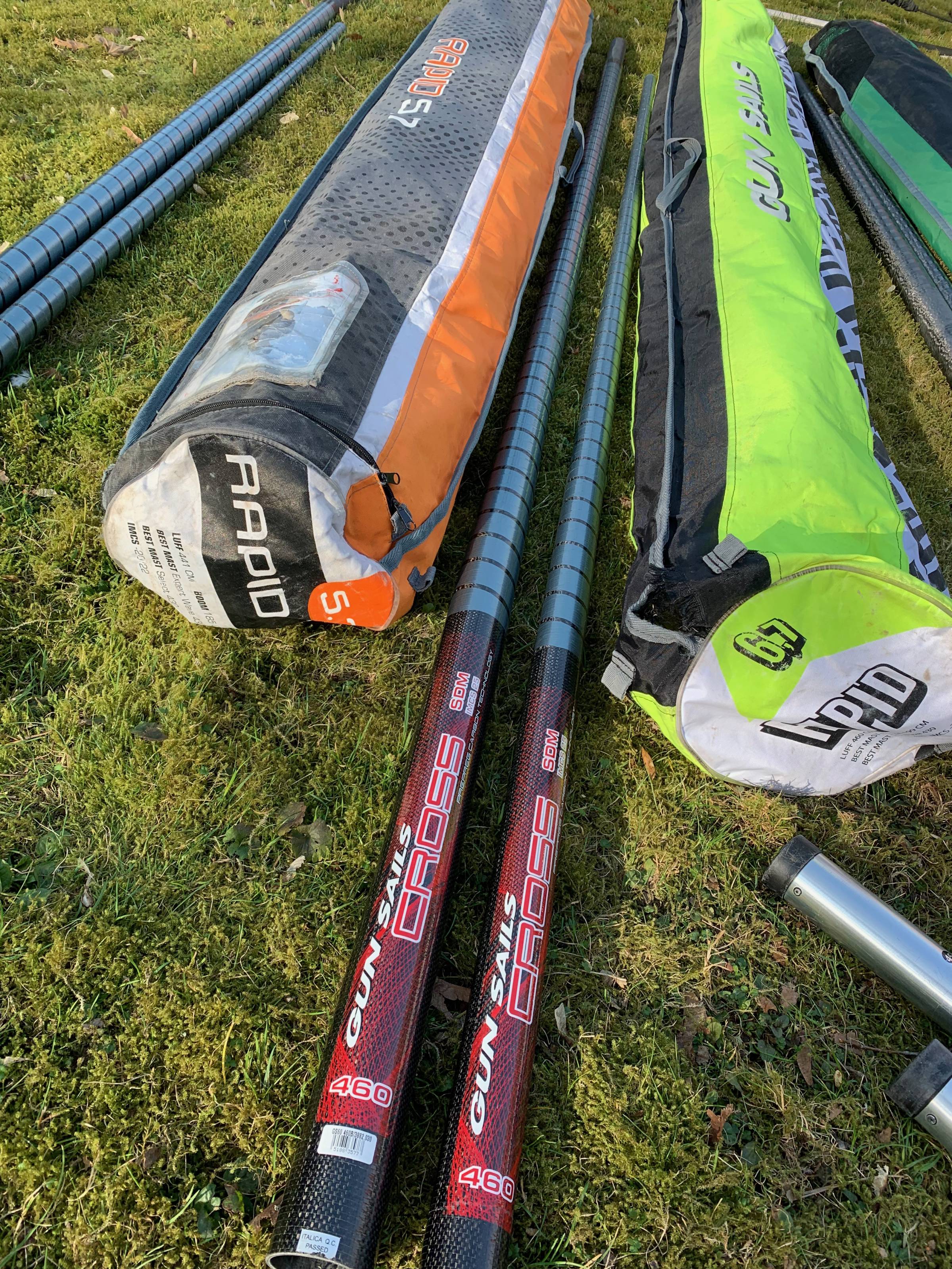 3 Masten ua. Karbon, 2 Mastfüße, Gabelbaum Karbon, 2 Finnen. Alles in ordentlichem gebrauchten Zustand.