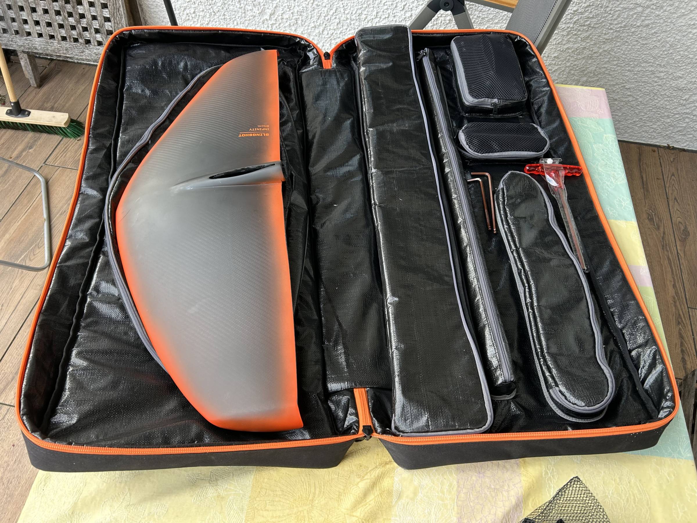 Super tolle Tasche für das Foil inkl. viel Equipment ist mit dabei, sodass man es auch gut transportieren kann.