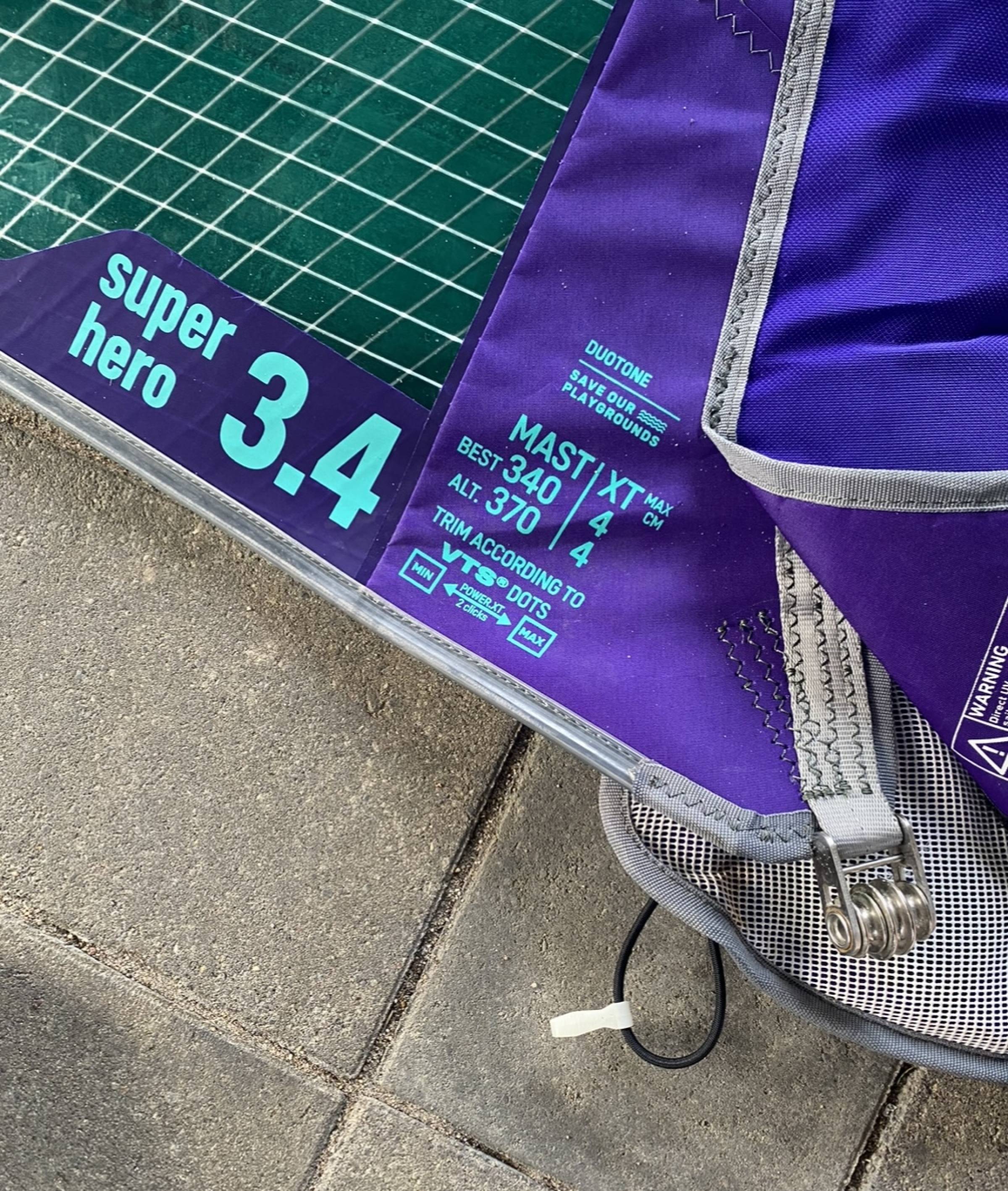 ich verkaufe hier mein 3.4er Super Hero. Ich bin es ca 15 mal gefahren. Das Segel funktioniert super und ist in einem guten Zustand. Es hat kleine Gebrauchsspuren, keine Löcher und nur eine kleine Stelle an der Latte (siehe Fotos).
