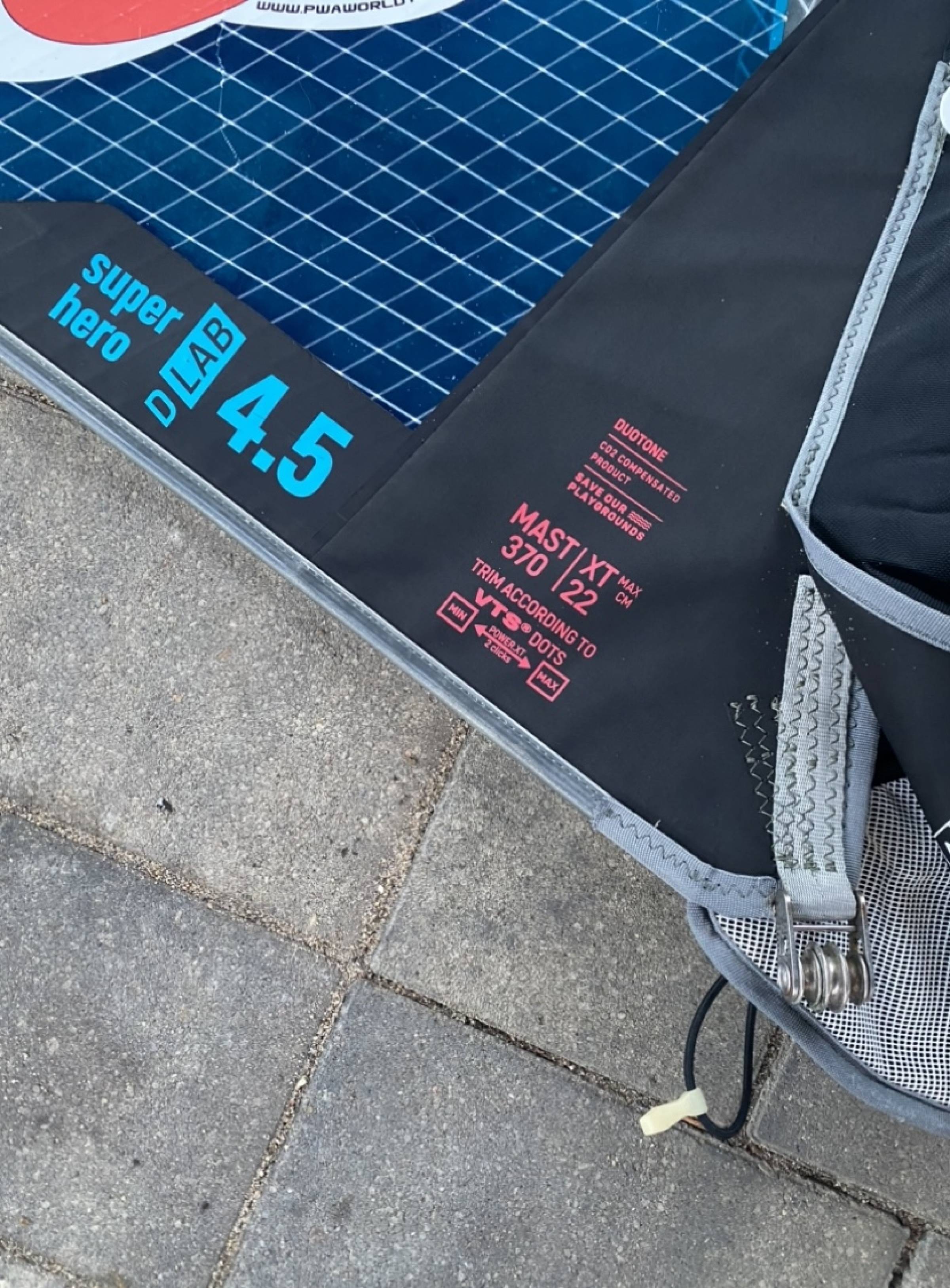 ich verkaufe hier mein 4.5er Super Hero D/LAB. Ich bin es eine Saison lang gefahren. Das Segel funktioniert super. Es hat eine Reparatur an der Masttasche. eine kleine Stelle an der oberen Latte und eine leichte Verfärbung am clew (siehe Fotos). Beeinträchtigt nicht die Fahrweise. Sonst nur leichte Gebrauchsspuren und leichte Stickerreste.