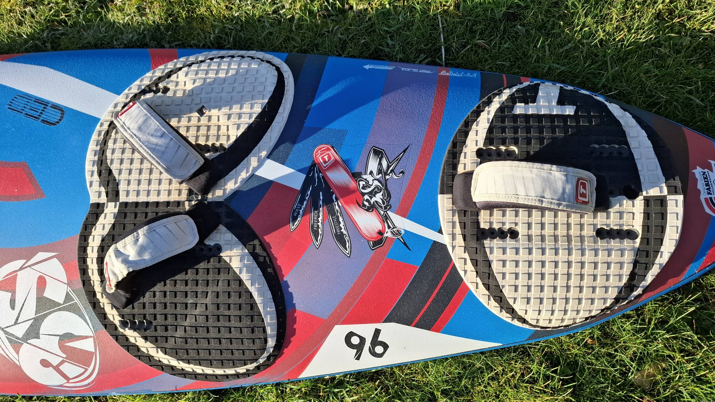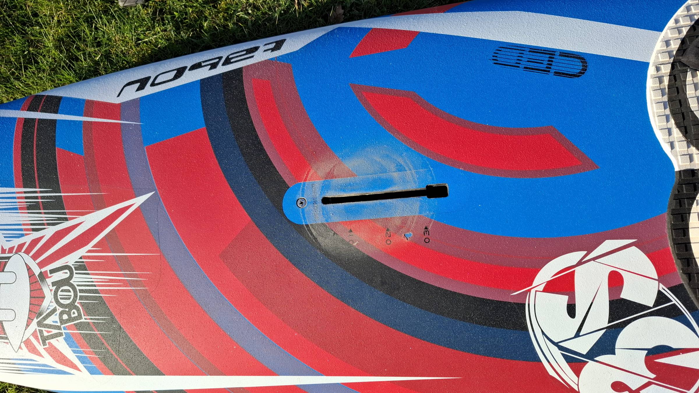 Das Board hatte Lackabplatzer an den Rails, die ich überlackiert habe. Ein Nasenschaden wurde repariert. Board ist dicht, hart und hat kein Wasser gezogen. Guter und sofort einsatzbereiter Zustand.