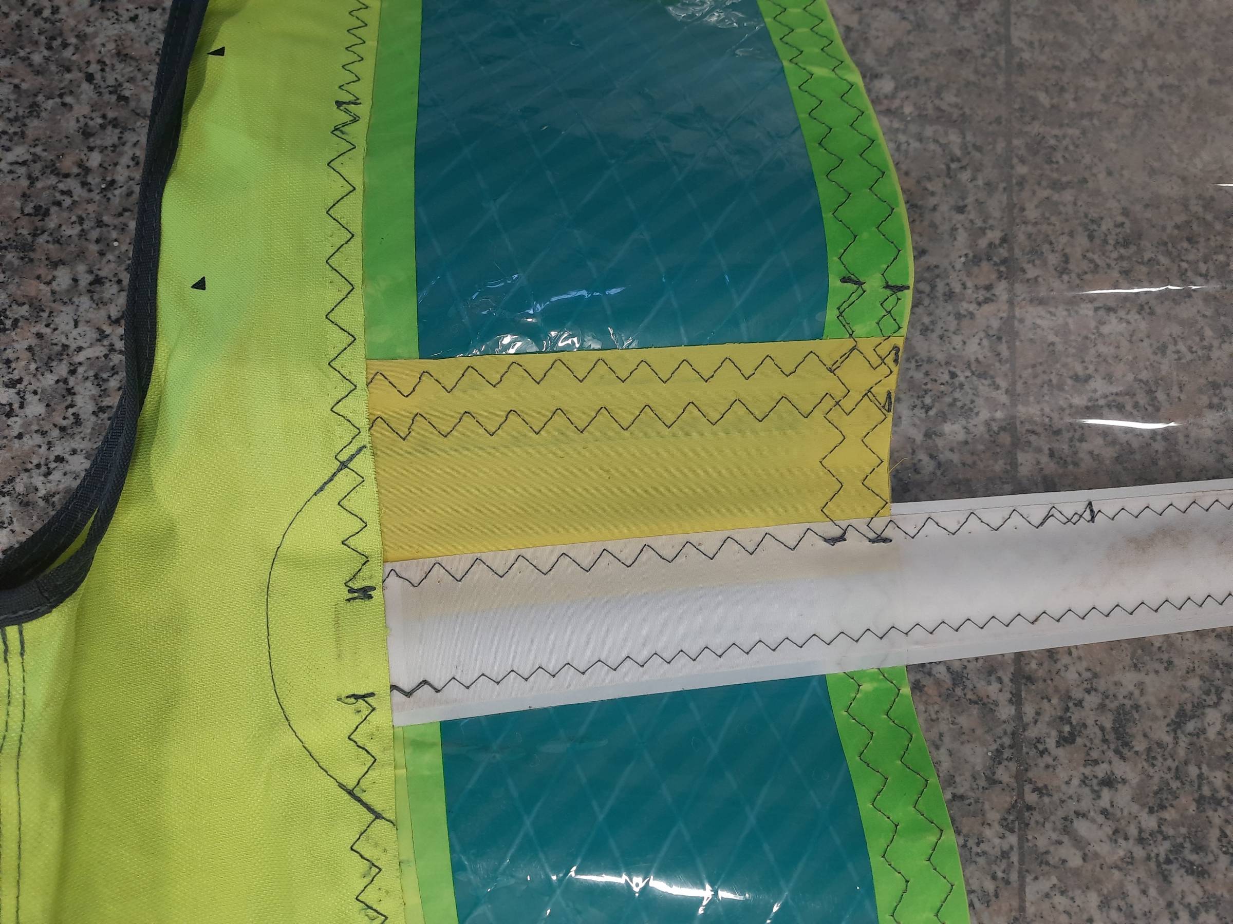 Ist wohl eine typische Schwachstelle bei dem Segel wenn die Latten überspannt werden. Hält wie Bombe.