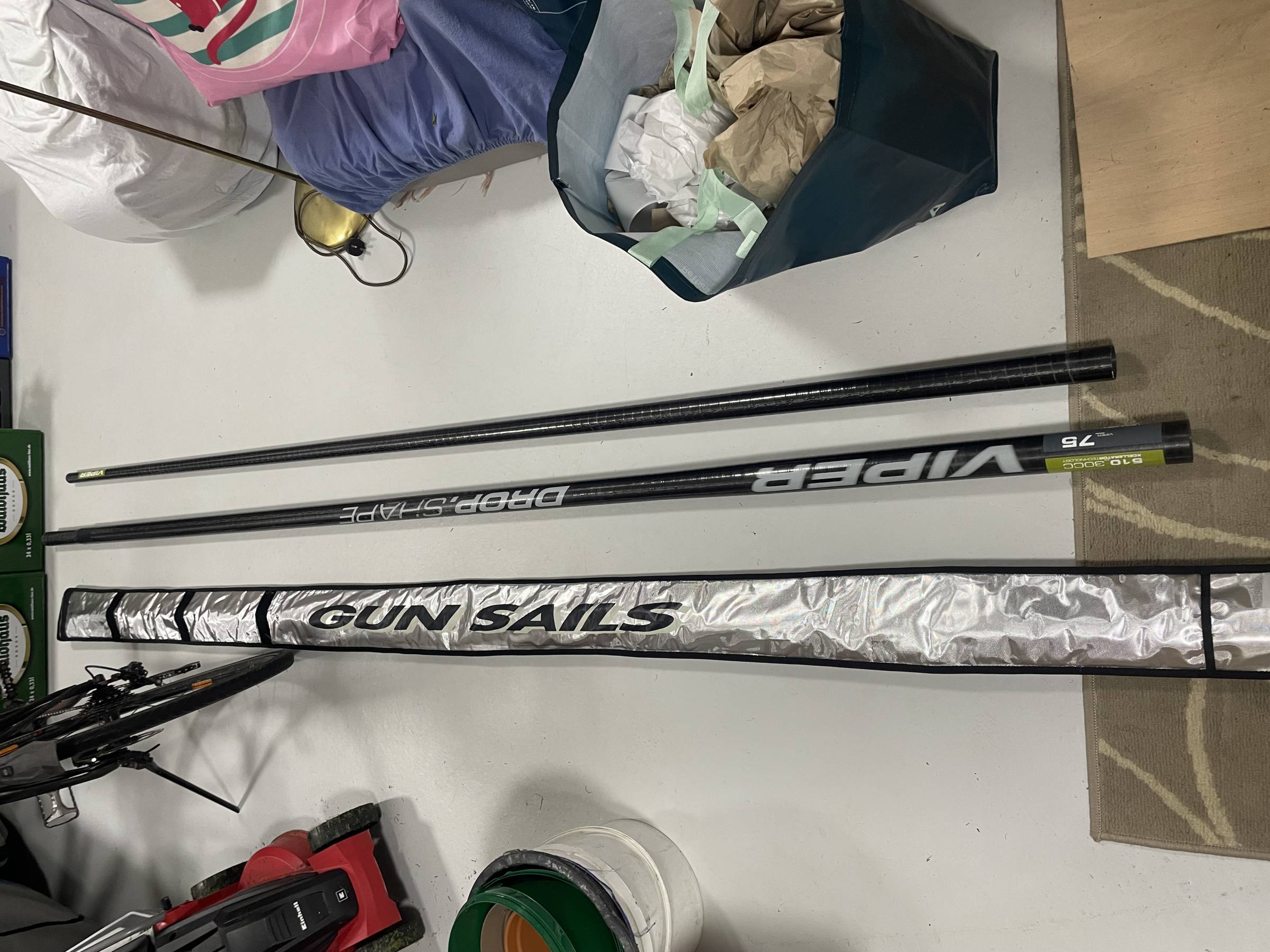 Der Mast ist einige Jahre alt, aber wurde nicht oft gefahren. Er kommt in einer fast neuen, hochwertigen Mastbag von Gunsails.