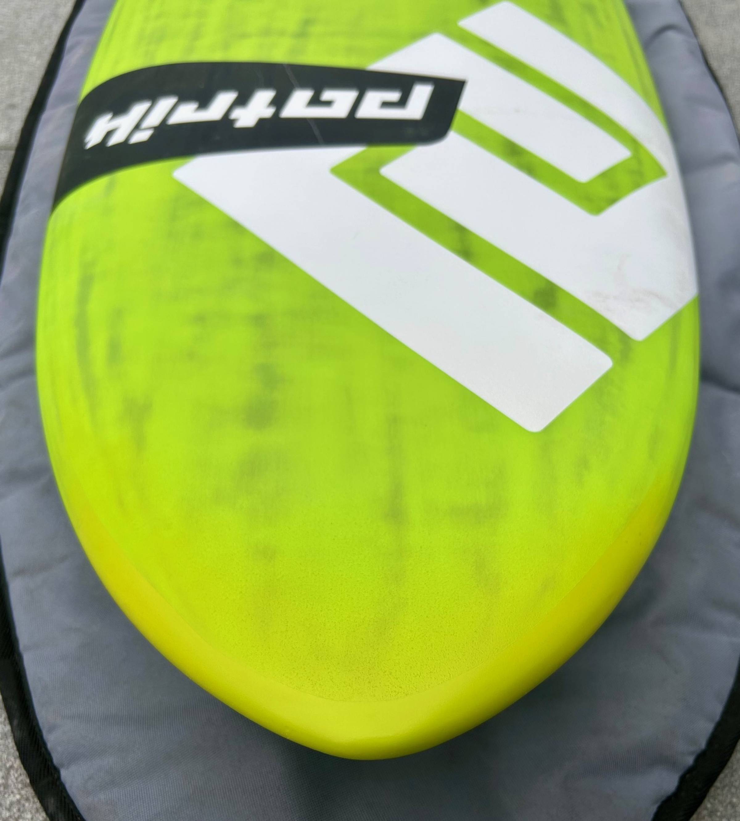 Das Board hat am Bug einen kleinen Transportschaden gehabt, den ich professionell reparieren lassen habe. Ansonsten ist das Brett in einem sehr guten Zustand und hat nur sehr wenige Gebrauchsspuren, wie aus den Bildern ersichtlich. .