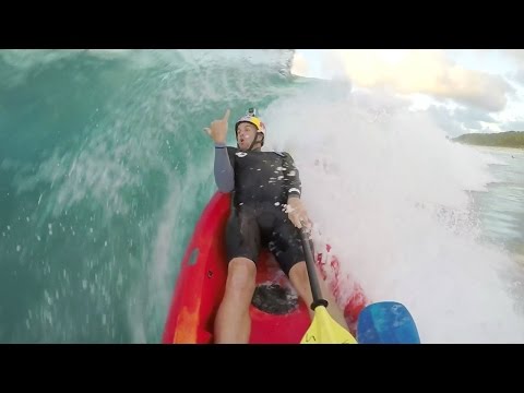 Oahu: Jamie O'Brien und Kollegen wagen sich mit Kayaks in die Wellen.