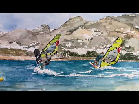 Das Bild und die Action dahinter - Freestylen in der Lagune auf Naxos. Ein Video von Balz Müller, das Gemälde stammt von Michael Tsinoglou.