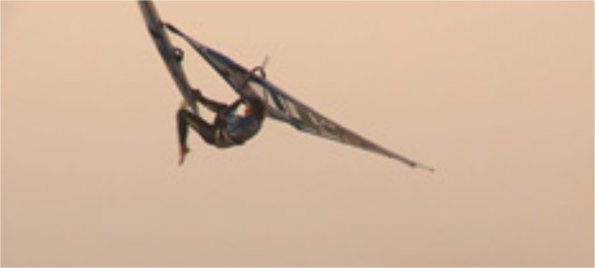 Shove it - eingefangen mit einer am Mast montierten Kamera. Das Anluven des Boards vor dem Absprung und das Verlagern...