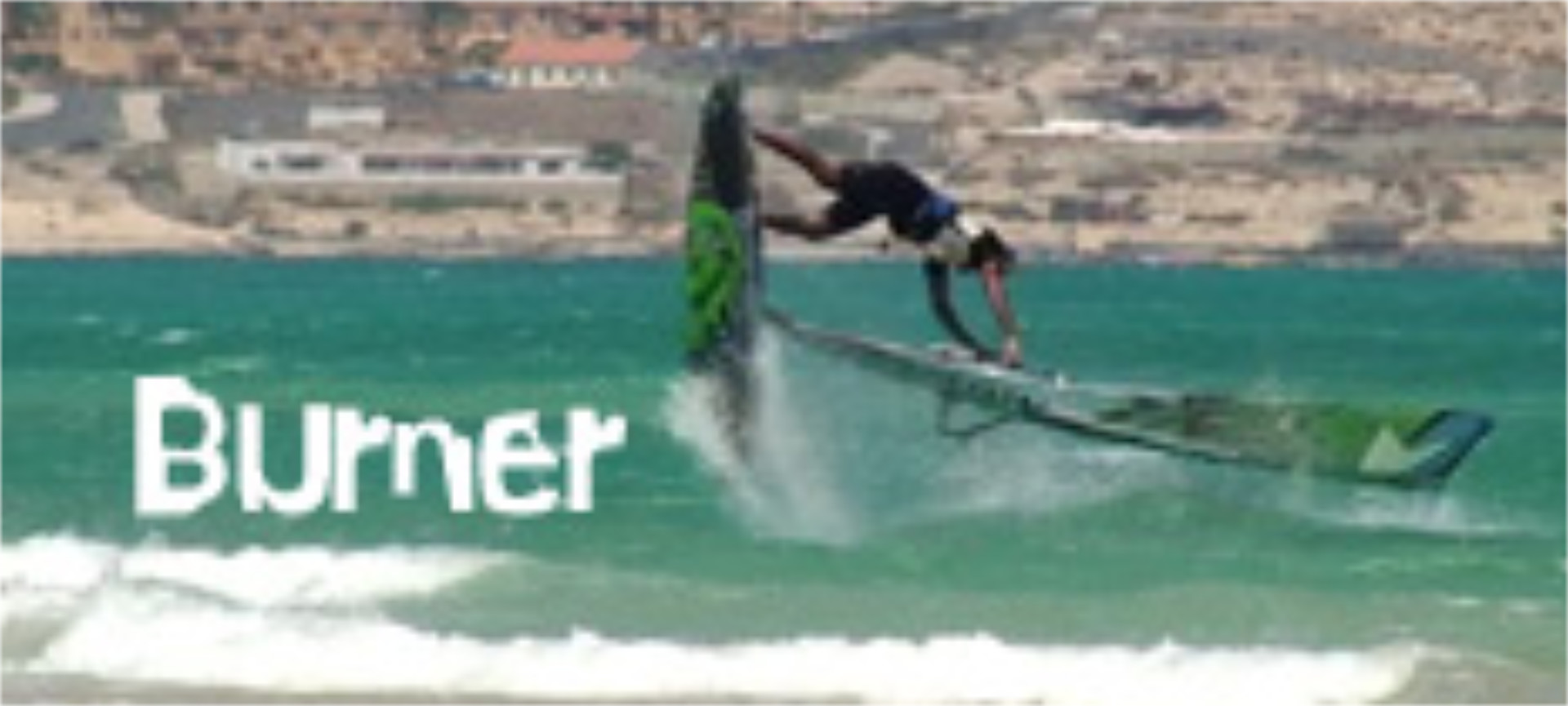 Ein Burner von Gollito vor der Kulisse der Costa Calma auf Fuerteventura. Gefilmt aus einer Position in Lee.
