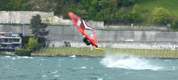 Dieses Zeitlupenvideo zeigt den Taka bei schrägauflandigen Bedingungen. Die Aufnahme ist gespiegelt, um den Bewegungsablauf des Moves in beide Fahrtrichtungen zu demonstrieren.