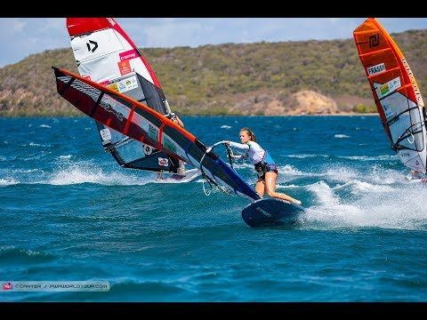Endlich Wind - die ersten beiden Slalomrennen wurden abgeschlossen. Der Pole Maciek Rutkowski führt vor Antoine Albeau und Jordy Vonk. Marion Mortefon liegt bei den Frauen vor Maëlle Guilbaud und Lena Erdil.