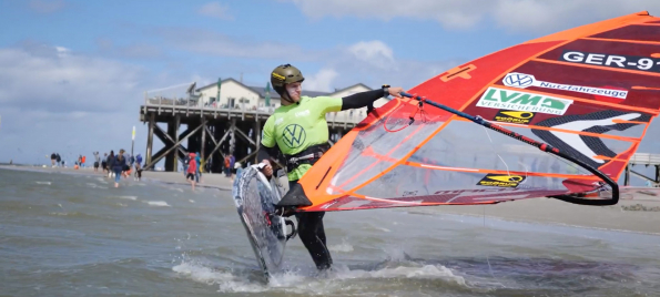 Wind satt am Strand von St. Peter-Ording. Dort findet gerade der Multivan Windsurf Cup statt und hier kommt der Clip zum ersten Tag des Slalom-Wettbewerbs.